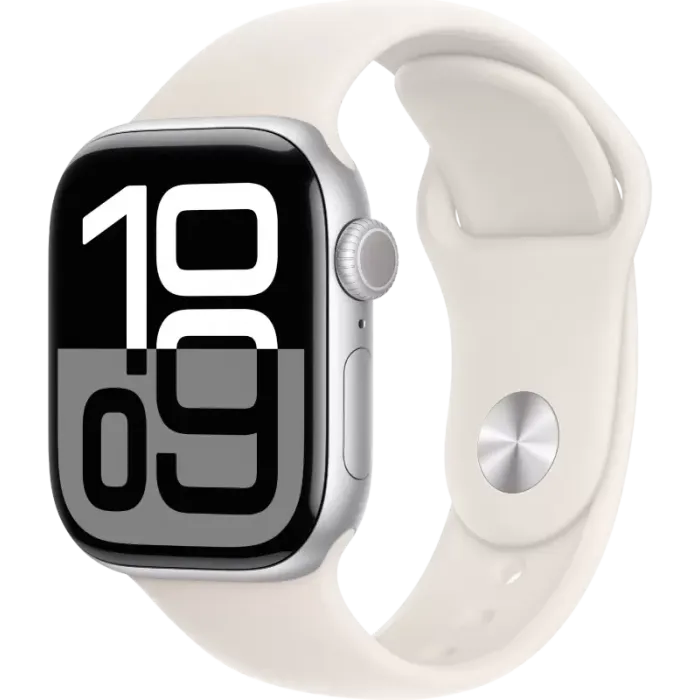 Умные часы Apple Watch Series 10 42 мм (алюминиевый корпус, серебристый/светло-персиковый, спортивный силиконовый ремешок M/L) - 872066 - Apple